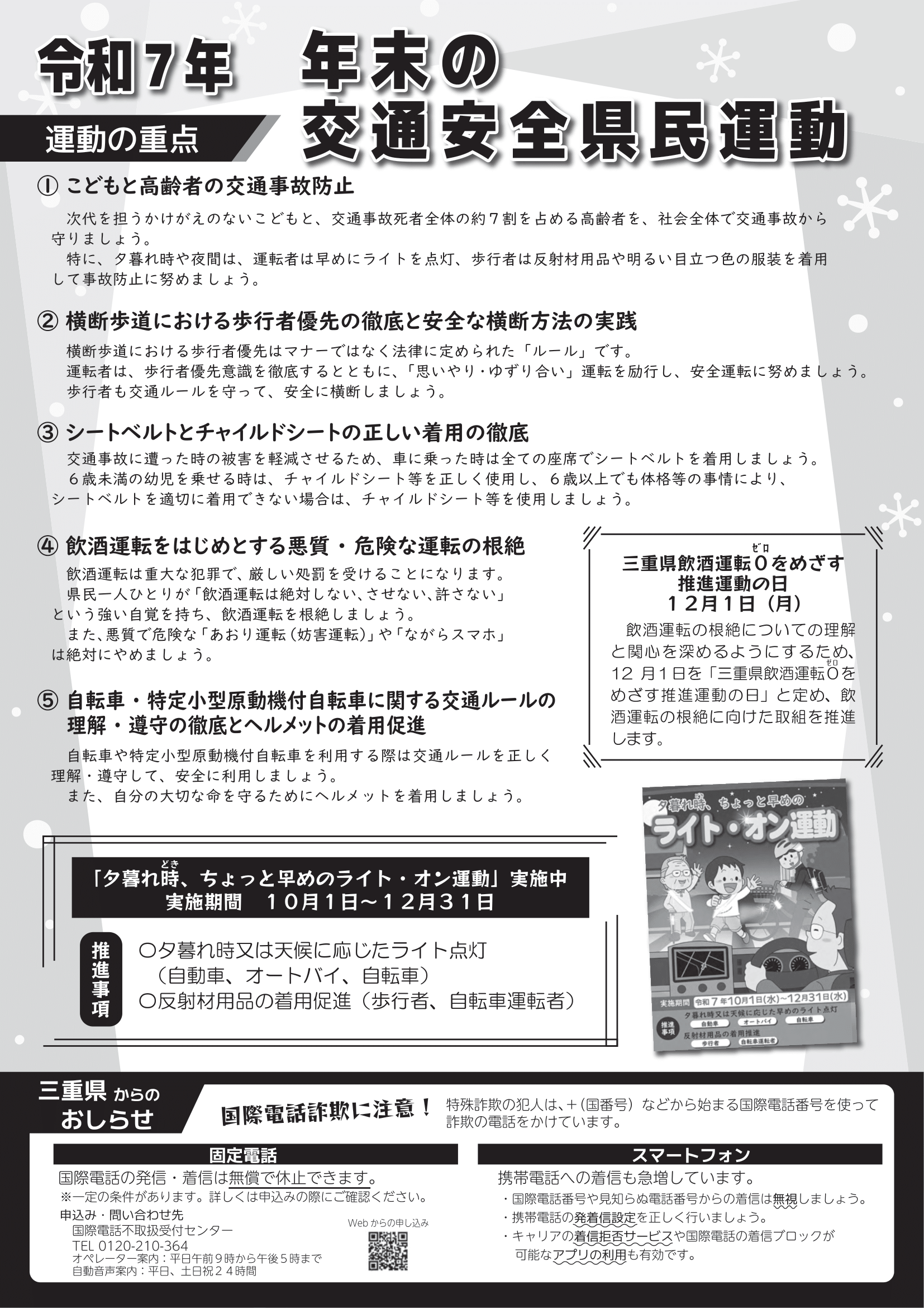 「令和7年 年末の交通安全県民運動」が実施されます。
